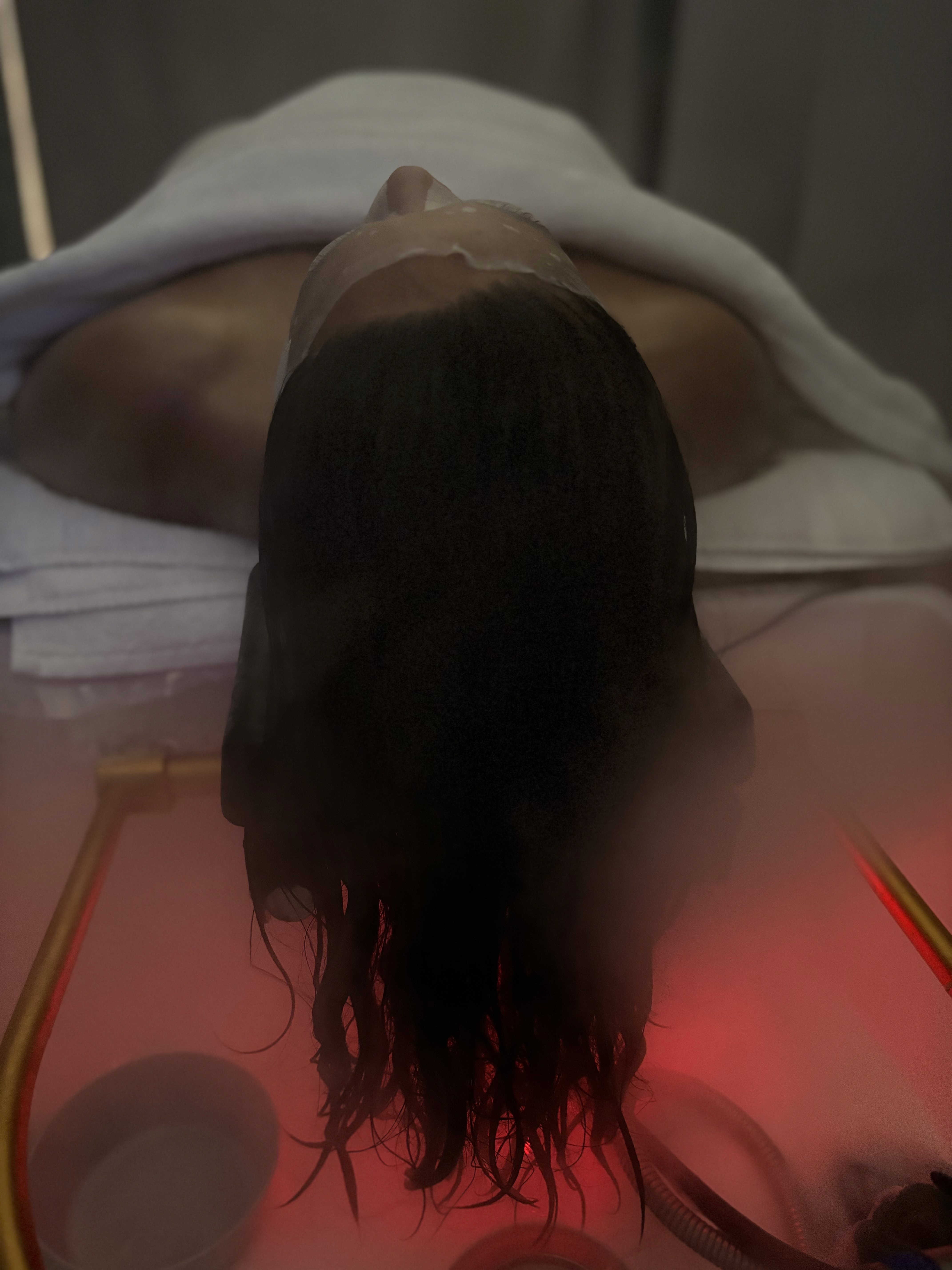 A rejuvenating head, neck and shoulder massage paired with a facial massage, microdermabrasion, neck and face tightening and red light therapy. Complete the experience with a steam eye mask, double shampoo, keratin hair mask and a smooth, professional blow dry.